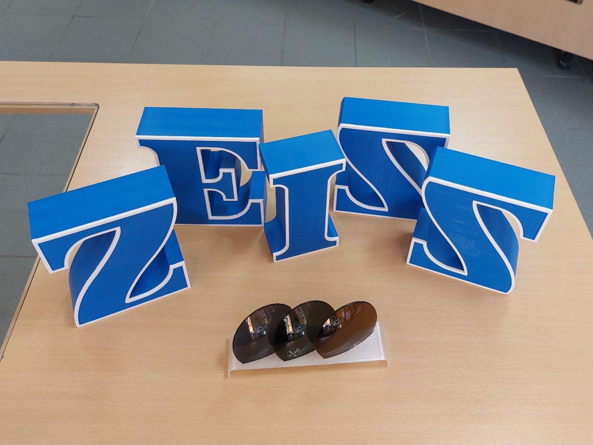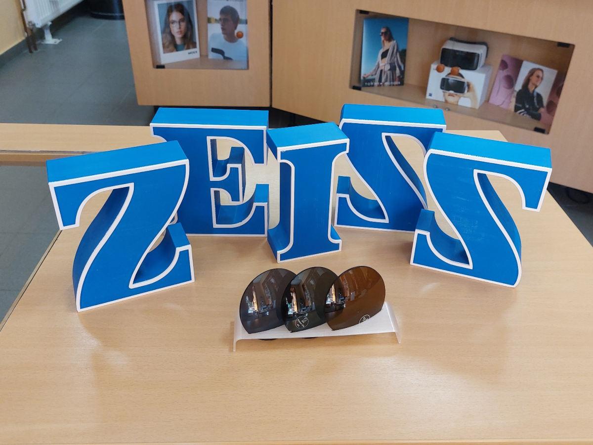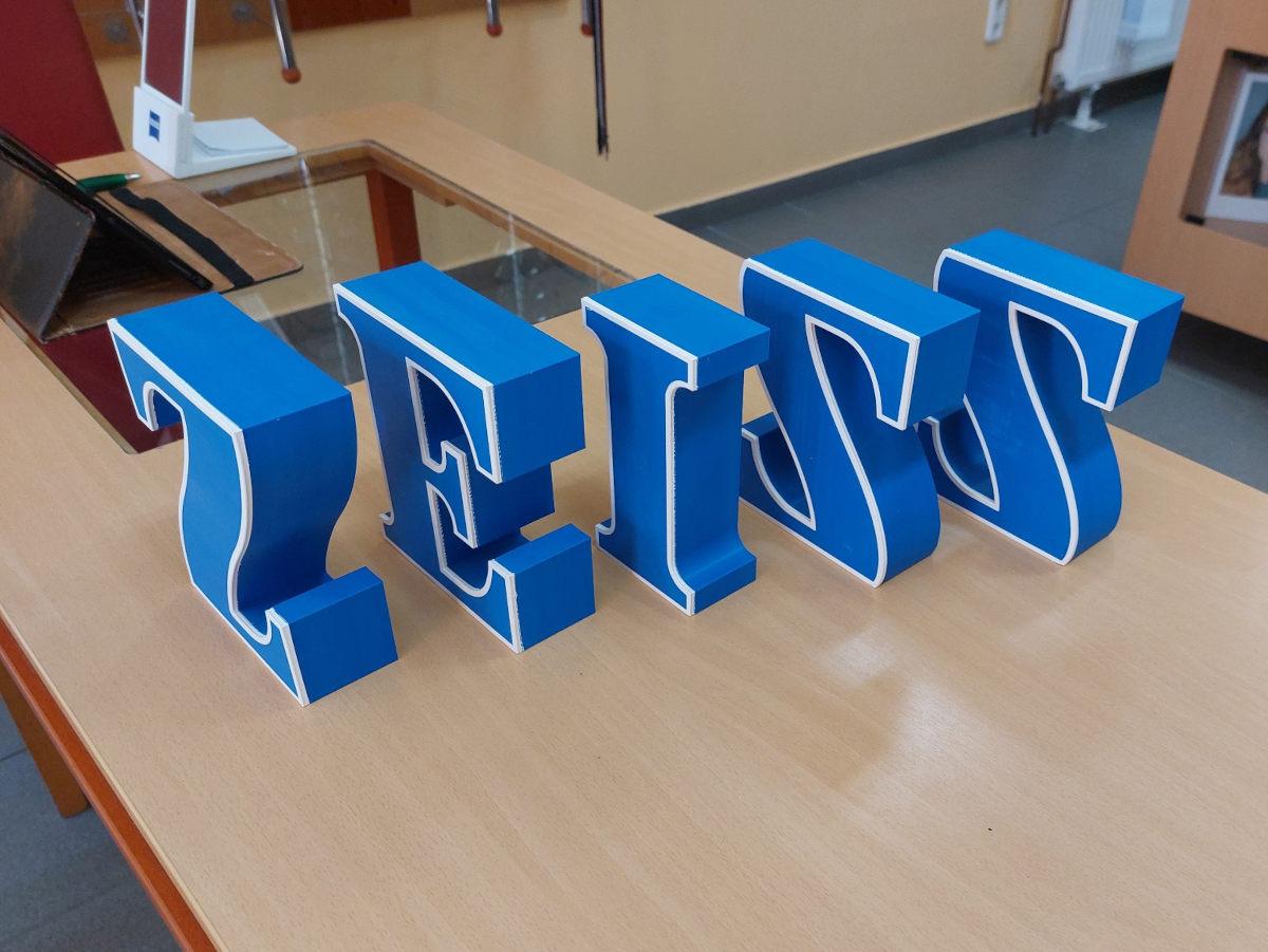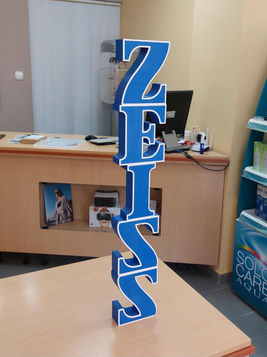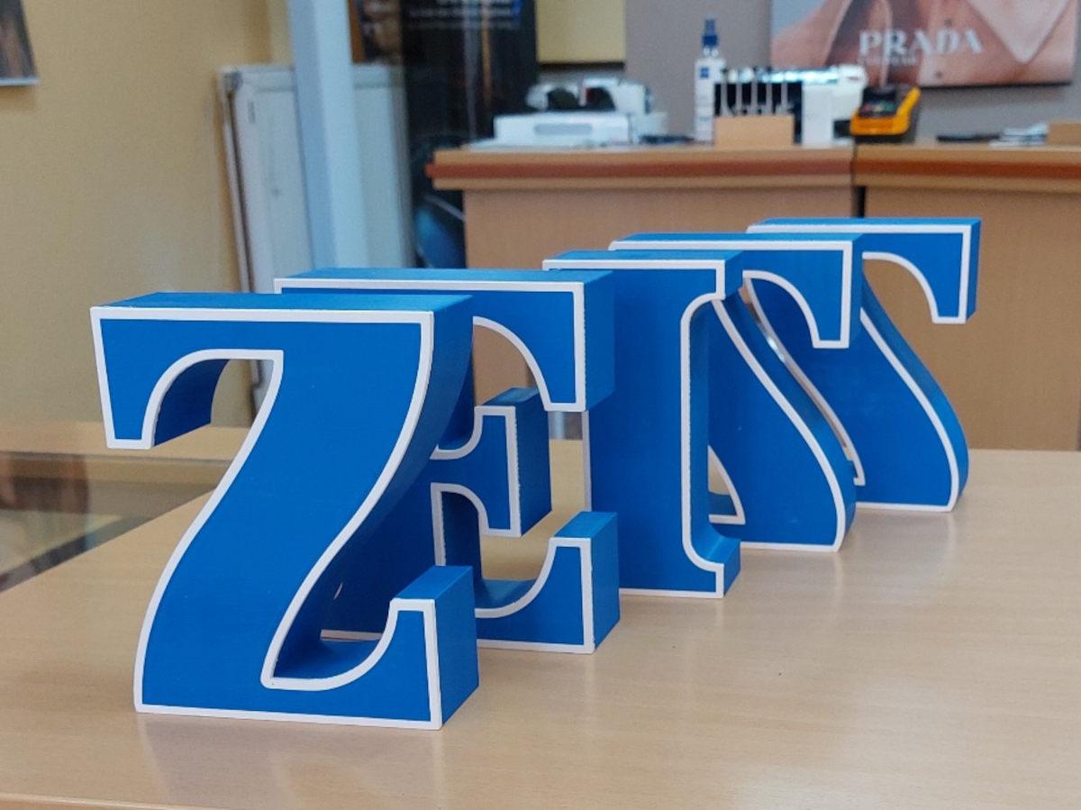 Die freistehenden Buchstaben der Marke Zeiss mit ihren Konturen und dem zweifarbigen Druck sehen im Schaufenster von Szendi Optik in Kőszeg fantastisch aus. Die Buchstaben bestehen aus robustem, UV-beständigem ASA-Material und können sogar vor Türen angebracht werden.