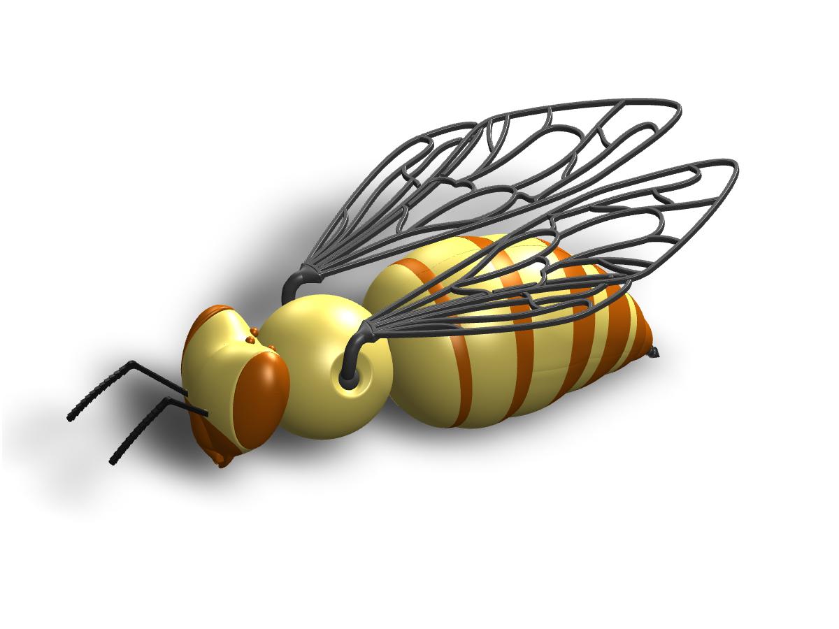 Die Haare, die den Körper der Biene bedecken wurden nicht modelliert. Die Oberseite der Königinnenbrust ist braun, da sie in Wirklichkeit dunkler und weniger behaart ist. Falls gewünscht, können die Zeichnungen der Königin mit Acrylfarbe nachgebildet werden.