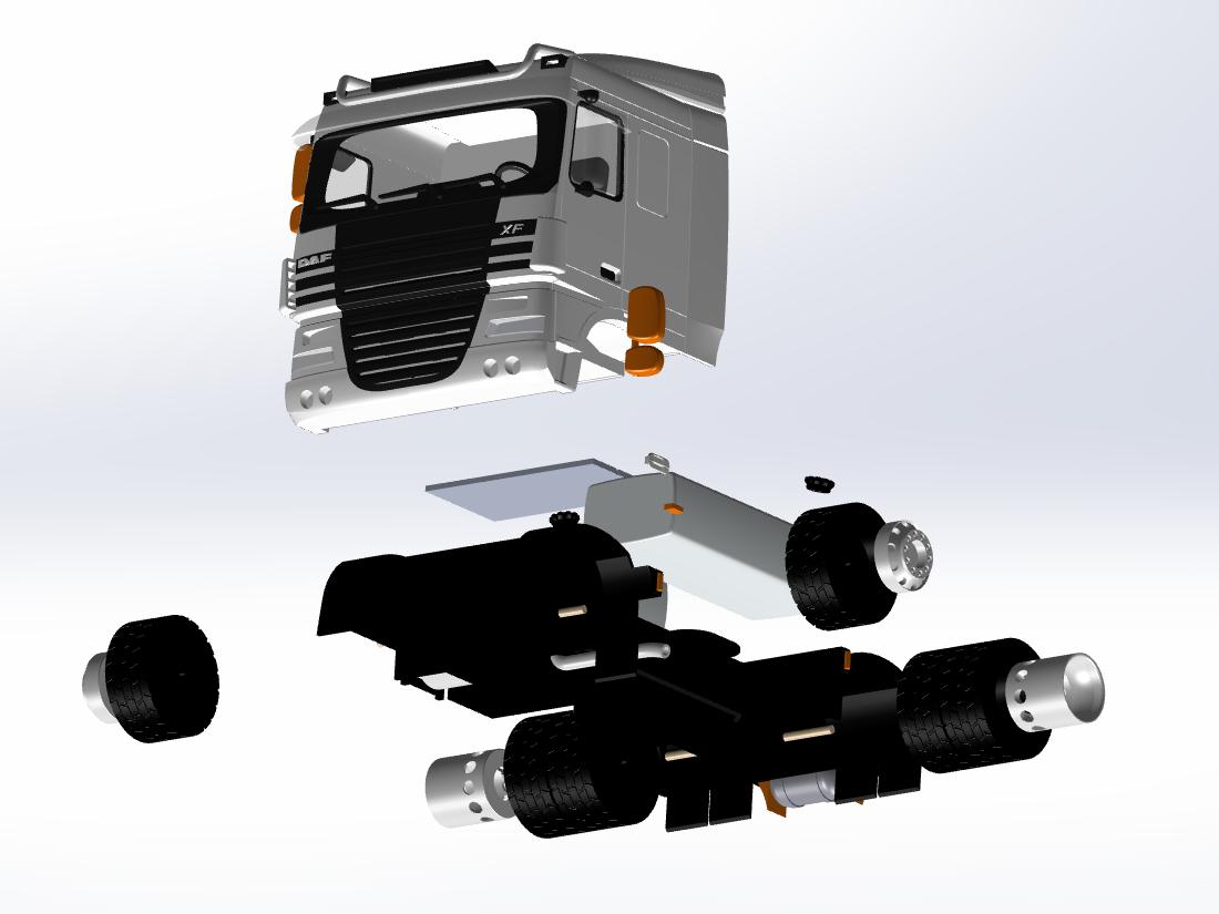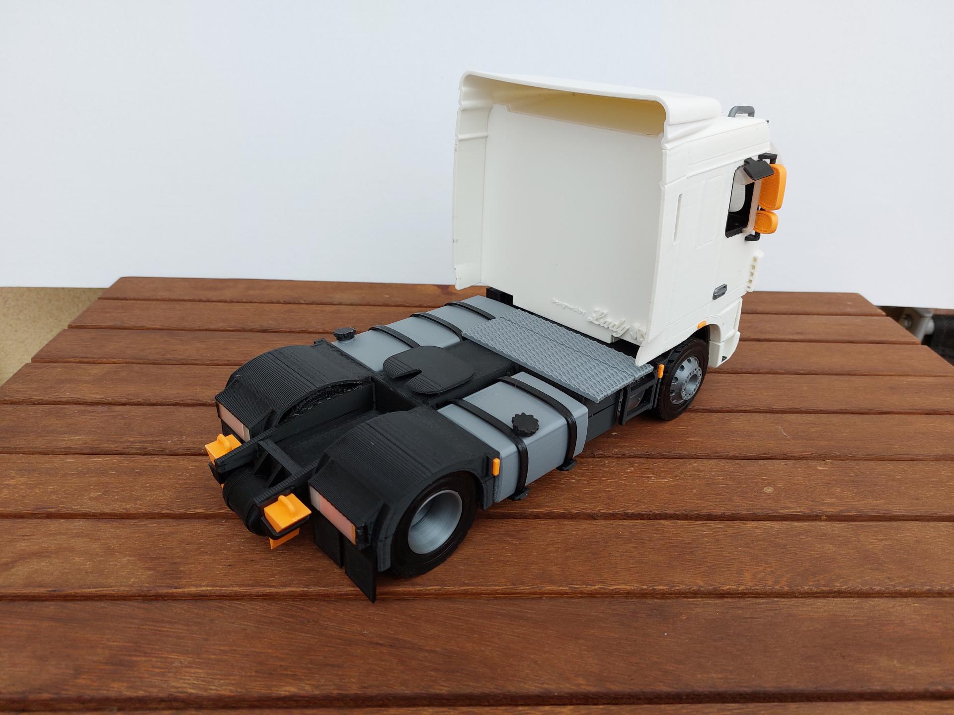 Das Modell besteht aus 70 Teilen, darunter sind auch drehbare Räder und abnehmbare Keile. Bis auf die Stahlachsen ist alles 3D-gedruckt und aus PLA und TPU gefertigt.