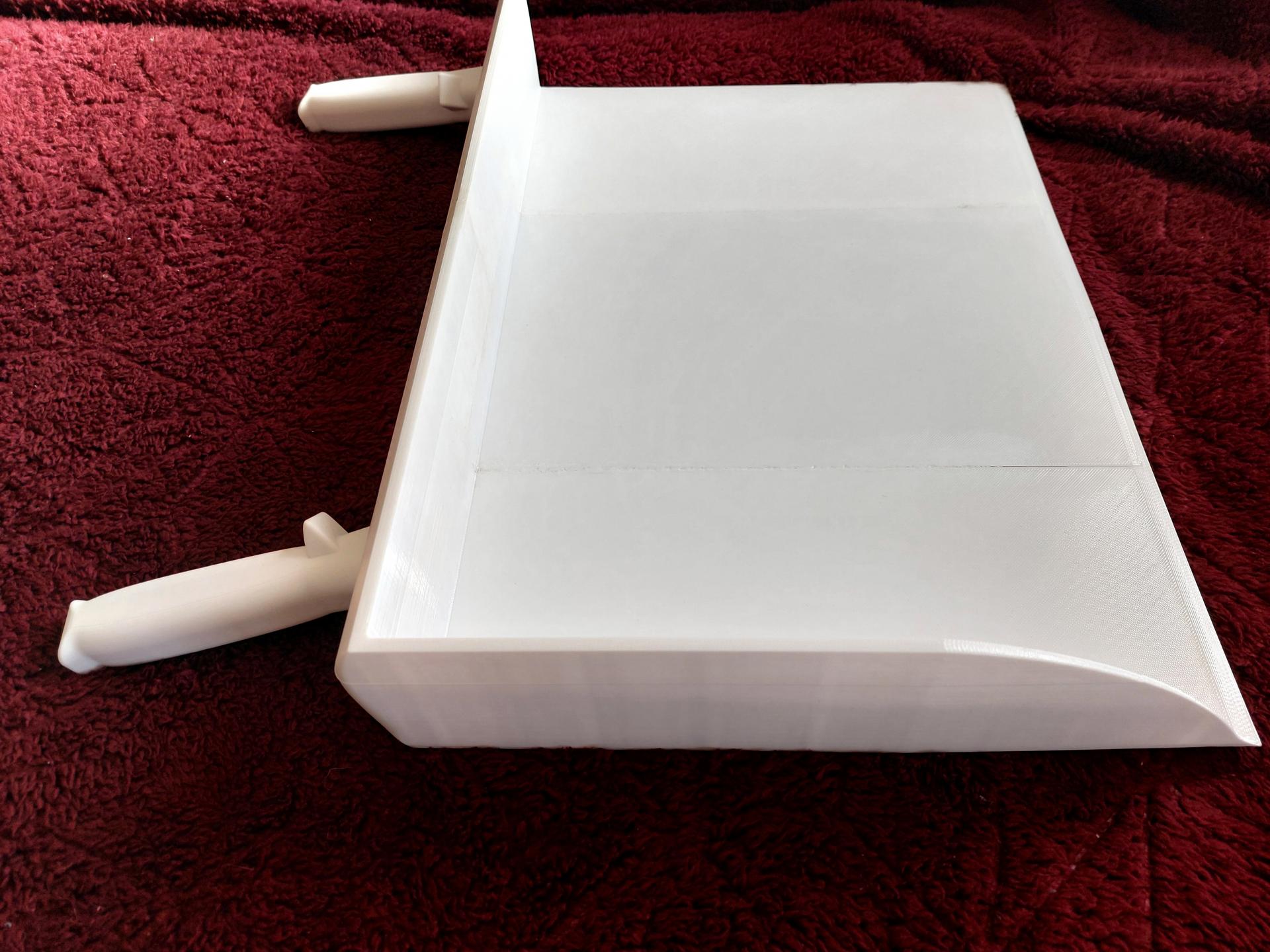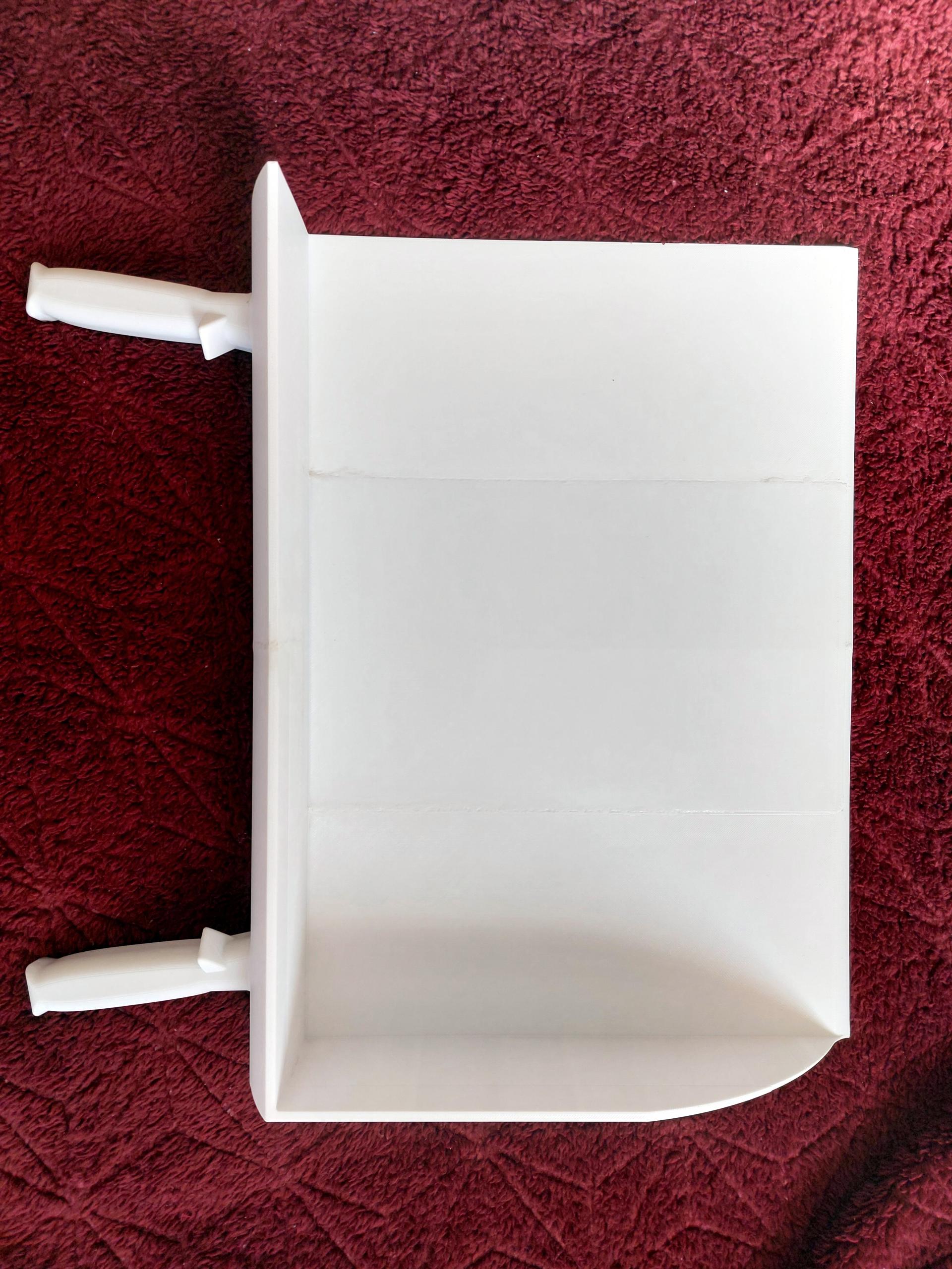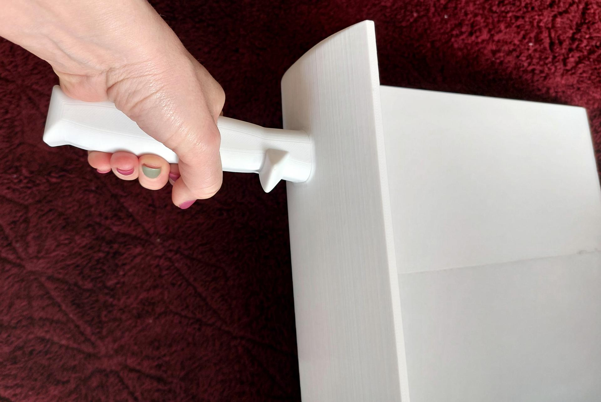 Das Problem war simpel, aber lästig: Die Edelstahlschaufel, mit der der Arbeiter die kiloweise Neapolitaner im Minutentakt auf einen anderen Tisch heben muss, ist schwer. Die theoretische Entwicklung dauerte fünf Arbeitsstunden, und der Druck stellte eine echte Herausforderung dar. Das Produkt wurde aus einem Material mit Lebensmittelzulassung gefertigt. Aufgrund seiner Größe musste es aus mehreren Teilen bestehen, die anschließend verklebt, verbunden und geschliffen wurden. Das Ergebnis war im Vergleich zum Original so leicht (nur ein Drittel des Gewichts), dass es dem Arbeiter fast aus der Hand fiel. Ich habe den Griff auch etwas angepasst, damit er besser in der Hand liegt und einen besseren Winkel hat.