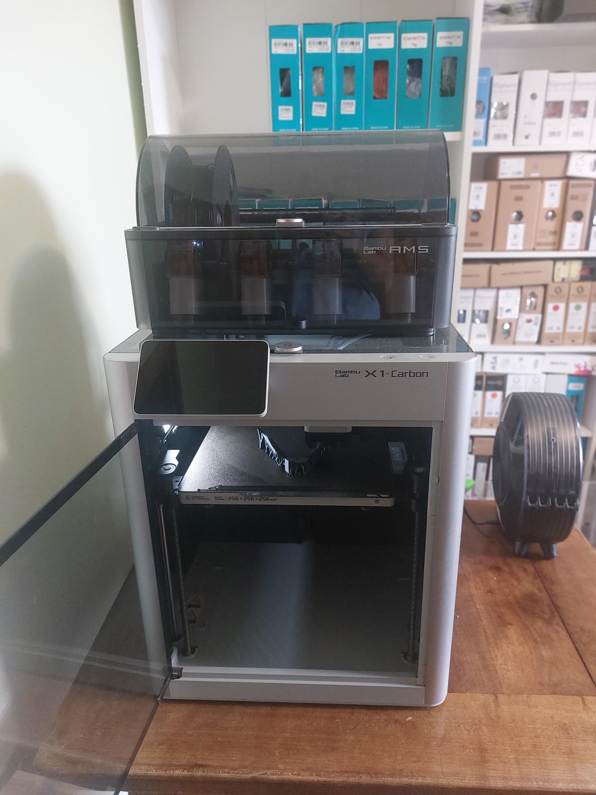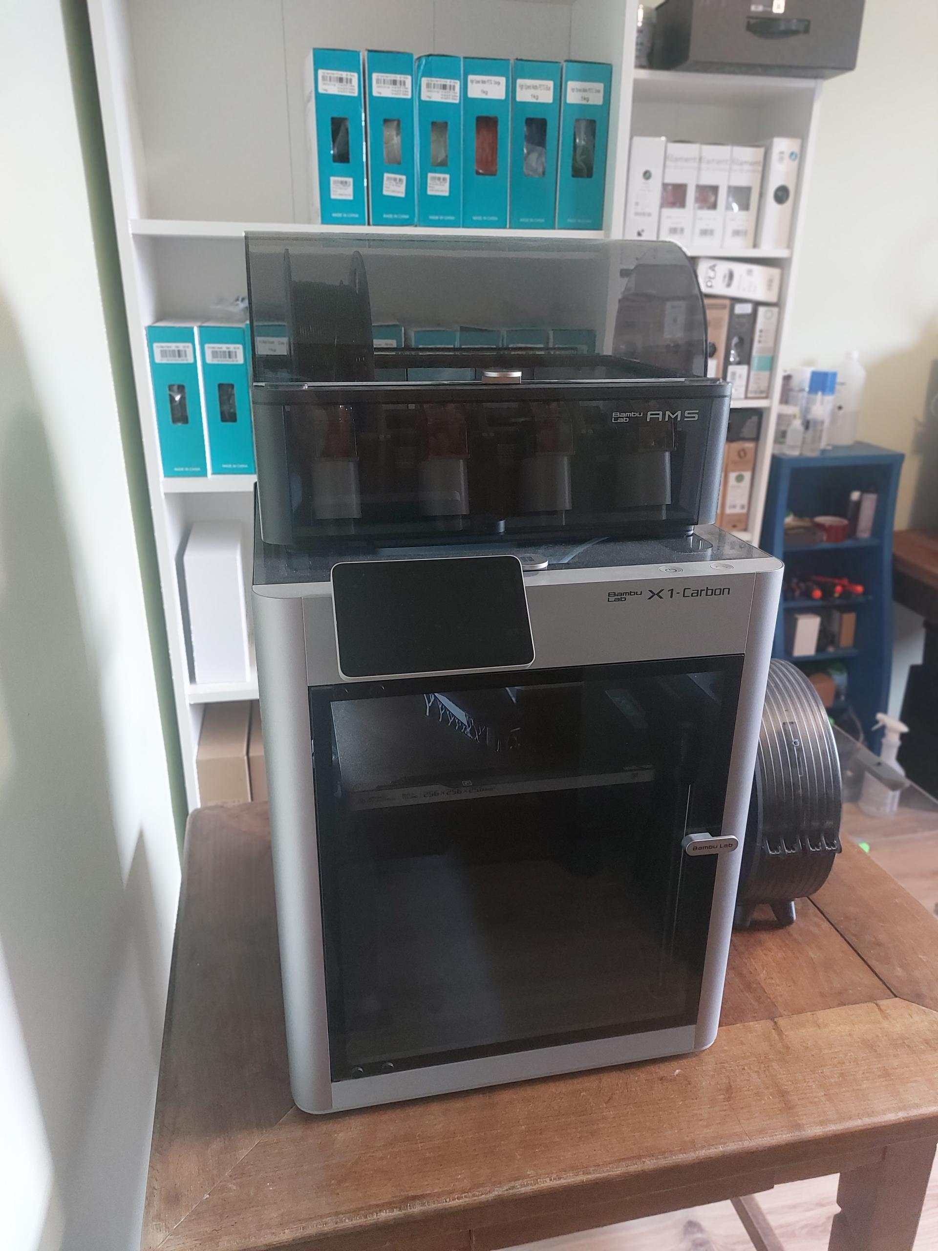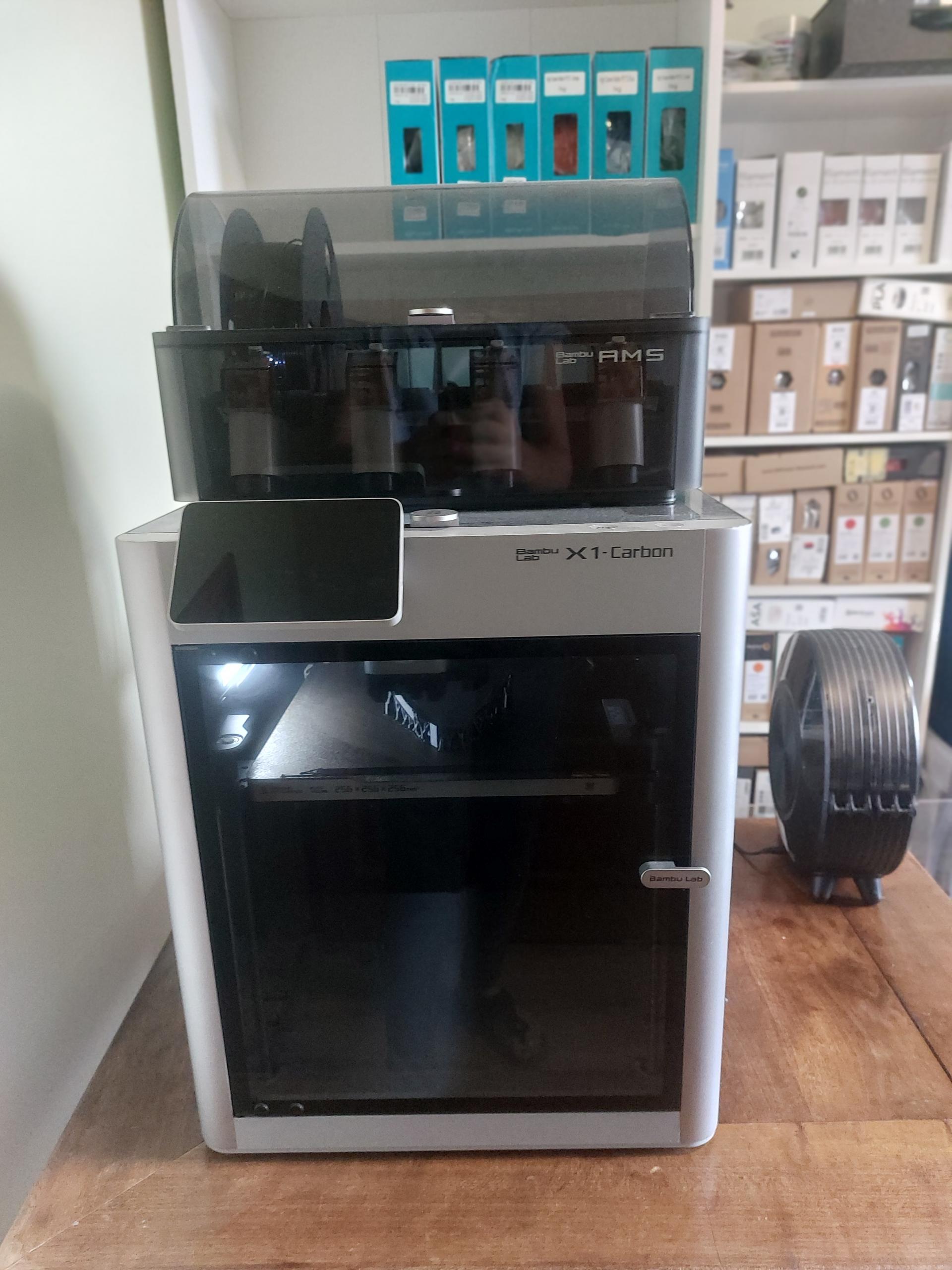 - BambuLab X1C, mit AMS, das 4 Materialen behandeln kann
